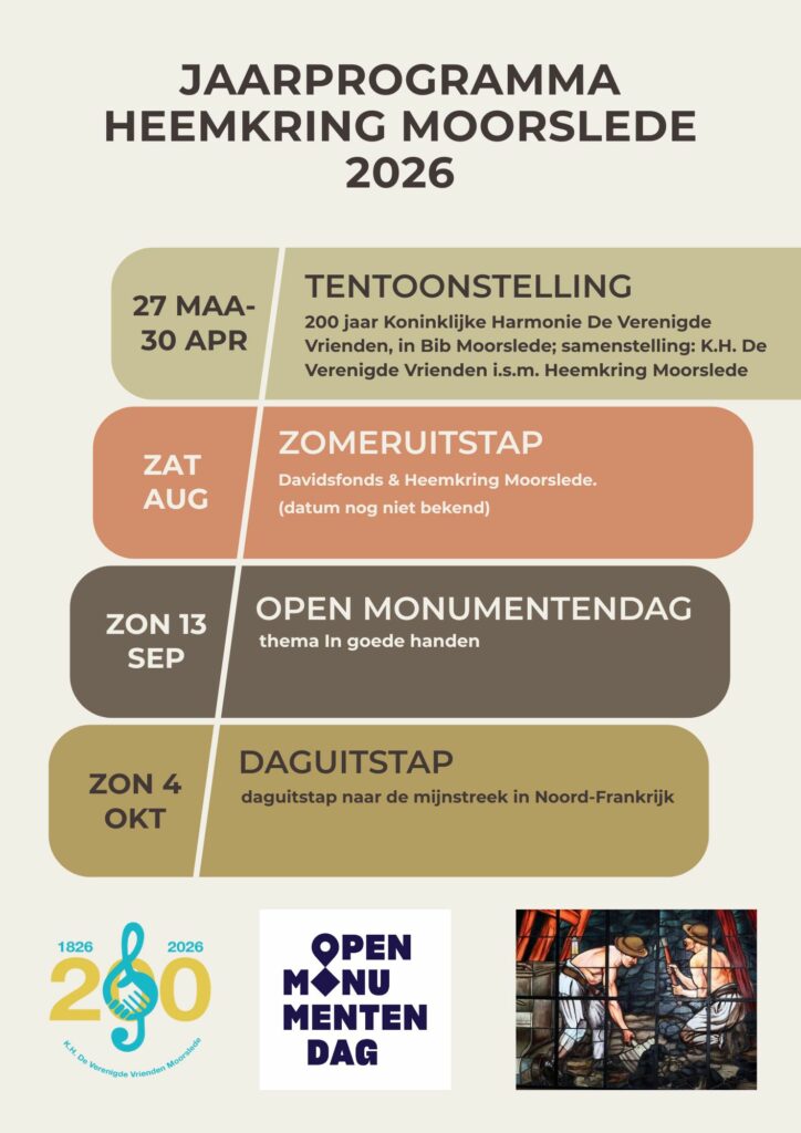 - Zaterdag [datum nog niet gekend] augustus 2026: ZOMERUITSTAP (Davidsfonds & Heemkring Moorslede) (1/25/2026)